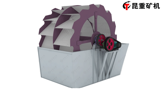 XSD系列葉輪洗砂機工作時,電機通過三角帶、減速機、齒輪減速后帶動葉輪緩慢轉動,砂石有給料槽進入洗槽中,在葉輪的帶動下翻轉、攪拌、淘洗,并互相研磨,除去覆蓋砂石表面的雜質,同時破壞包覆砂粒的水汽層,以利于脫水;同時加水,形成強大水流,及時將雜質及比重小的異物帶走,并從溢出口洗槽排出,完成清洗作用。干凈的砂石由葉片帶走,砂石從旋轉的葉輪倒入出料槽,完成砂石的清洗作業。